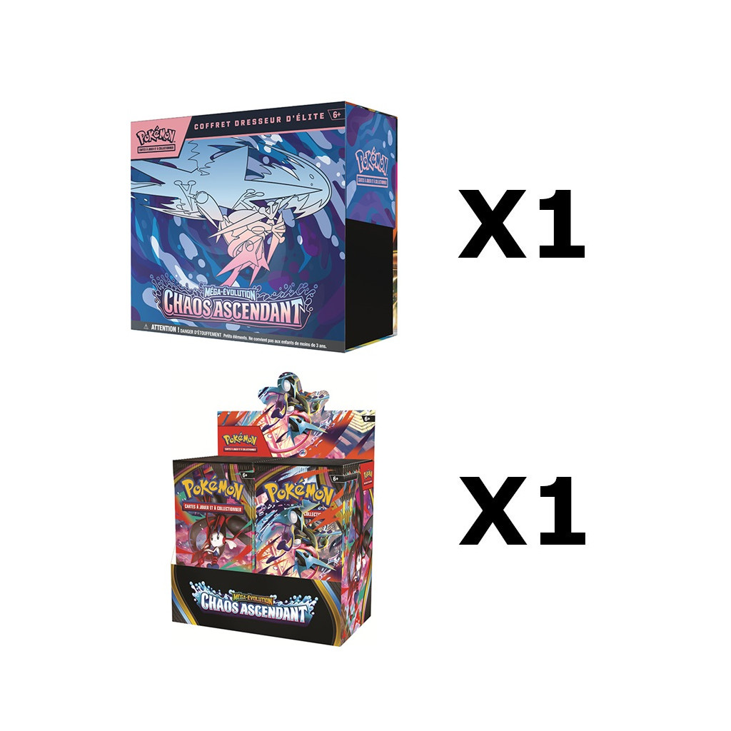 Pourquoi choisir entre quantité et qualité quand on peut avoir les deux ? Le Bundle Pokémon Chaos Ascendants (ME-04) est conçu pour les collectionneurs qui ne veulent rien laisser au hasard. En combinant la puissance de tirage d'une Display de 36 boosters avec les accessoires premium d'un Coffret Dresseur d'Élite (ETB), vous plongez tête la première dans l'ère des Méga-Évolutions avec tout le nécessaire pour jouer et protéger vos cartes rares.