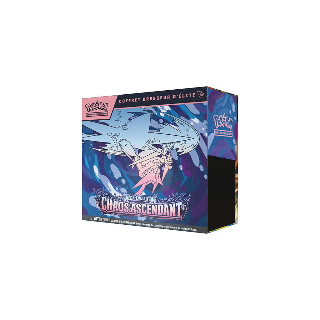Prêt à dompter le chaos ? Équipez-vous du Coffret Dresseur d'Élite Chaos Ascendants et montrez à vos adversaires la puissance des Méga-Évolutions !