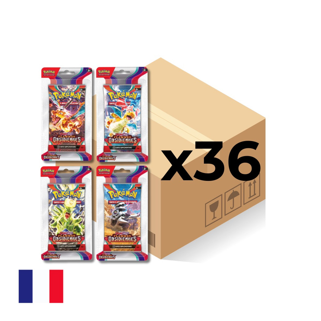 Dominez le terrain avec cette Case de 36 boosters blisters Pokémon Flammes Obsidiennes (EV03), l'extension qui a enflammé le bloc Écarlate et Violet.