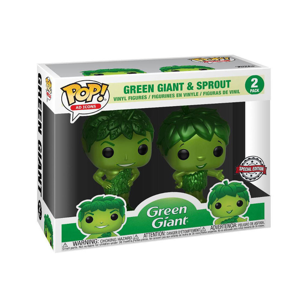 Green Giant (Le Géant Vert en français) est la mascotte de la fameuse marque de légumes en conserve Géant Vert. Funko l'a ici représenté avec Sprout, son fils qui se trouve simplement être une version plus petite de lui-même. Leur corps est entièrement vert, ici en version métallique et leurs cheveux sont faits de feuilles. Les deux portent une sorte de pagne vert aussi fait de feuilles. Un pack très sympathique pour les fans d'icônes de pub.