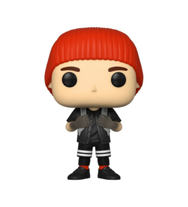 RM est l'un des membres du fameux groupe coréen de K-Pop. Ayant commencé comme rappeur underground, il devint plus tard le leader du fameux groupe coréen en tant que chanteur, rappeur et compositeur. Funko l'a ici représenté dans le clip du morceau Dynamite où son look fait hommage à la mode des années 70. Il porte un pantalon moutarde avec une chemise à motifs noire et blanche. Au niveau de la tête, on retrouve ses lunettes de soleil oranges et ses cheveux turquoise. Une figurine joliment colorée à réunir avec celles des autres membres du groupe.