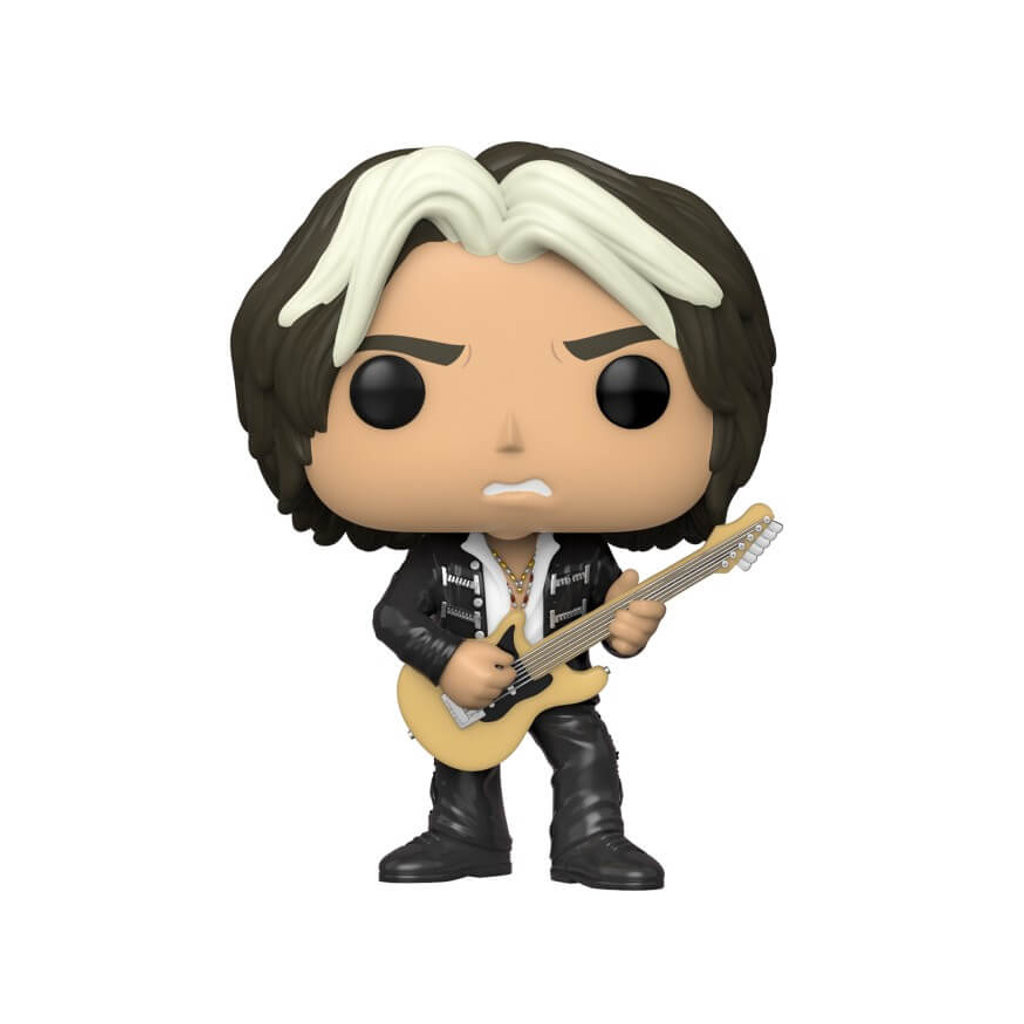 Joe Perry est un musicien et compositeur américain né dans le Massachusetts aux Etats-Unis en 1950. Il est surtout connu pour être le guitariste et l'un des membres fondateurs du groupe de hard rock Aerosmith. Funko l'a ici représenté sur scène portant un pantalon et une veste en cuir ouverte sur une chemise blanche et de nombreux colliers. Il est bien sûr représenté jouant de la guitare et, au niveau de la tête, on retrouve ses cheveux bruns avec deux grosses mèches blanches. Une figurine très expressive à réunir avec les autres membres du groupe.