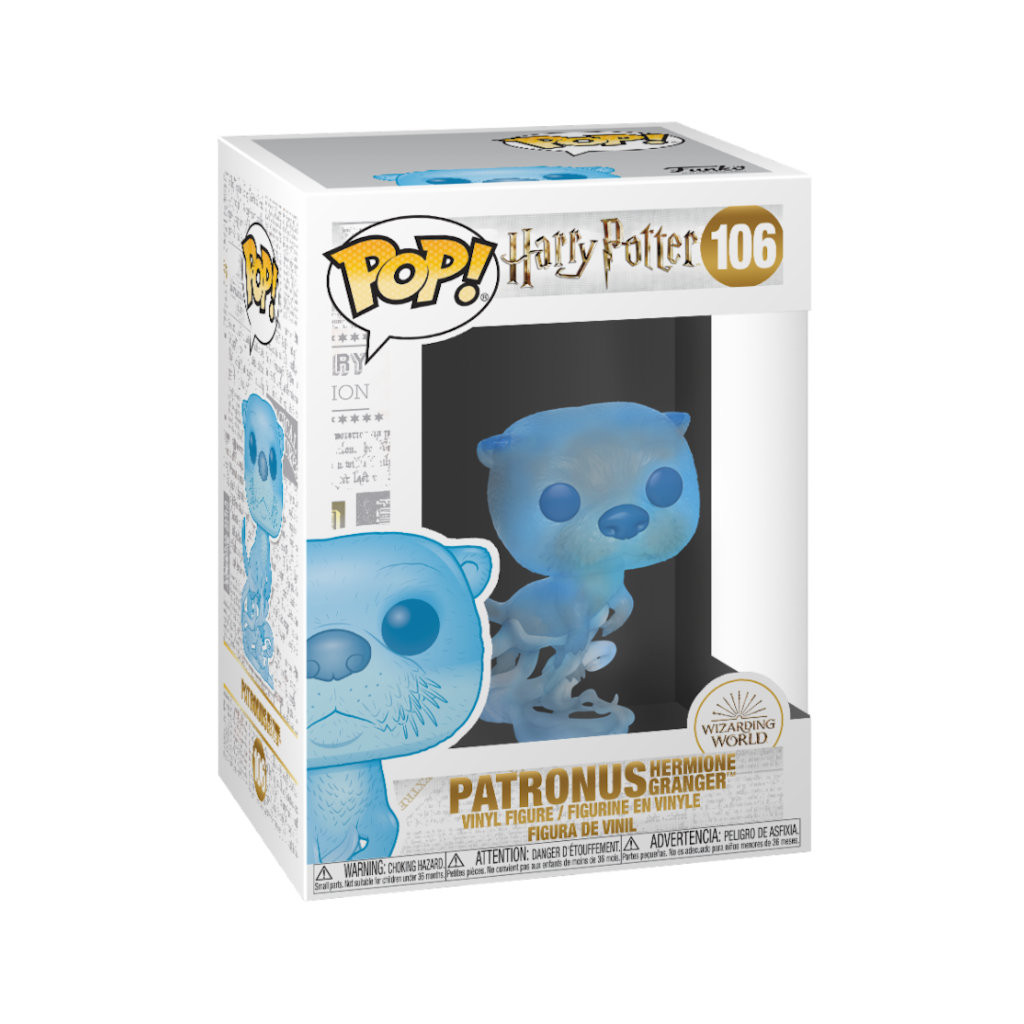 Hermione Granger est une brillante jeune sorcière, toujours la première de sa classe à l'école de magie Poudlard. Il n'est pas étonnant qu'elle apprenne à produire un patronus dès sa cinquième année. Ce dernier est une sorte de bouclier qui la protégera, entre autres, des détraqueurs. Funko a donc représenté ici son patronus qui prend la forme d'une loutre. On retrouve bien l'adorable petite tête de la loutre avec son pelage et ses petites oreilles. Le plastique bleu translucide et les filaments partant de ses pattes montrent bien la nature intangible et lumineuse du patronus. Encore une superbe figurine à réunir avec celles des patronus des autres personnages d'Harry Potter.
