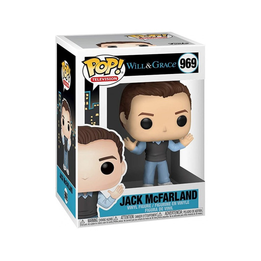 Jack McFarland est un personnage important de la sitcom culte des années 90 Will & Grace. C'est un ami proche de Will, l'avocat homosexuel qui est le héros de la série. Funko l'a représenté avec son pantalon bleu, sa chemise bleue et son pull sans manche gris. Il est représenté les mains levés et ses cheveux en pics sur le dessus de sa tête. Une figurine très sympathique à réunir avec les autres figurines de cette série culte.