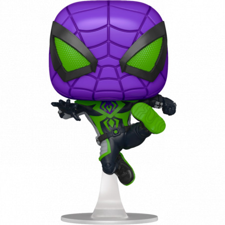 Miles Morales est le Spider-Man d'une Terre alternative sur laquelle Peter Parker est mort. Miles ayant lui aussi été mordu par une araignée radioactive, décide de prendre le relai. Funko l'a ici représenté en version métallique avec son costume violet et vert. On retrouve bien le motif de toile d'araignée sur son visage et l'araignée sur son torse mais le tout dans des couleurs différentes. Il est représenté en plein saut avec un pied en avant. Une figurine superbement dynamique pour les fans de cet univers culte.