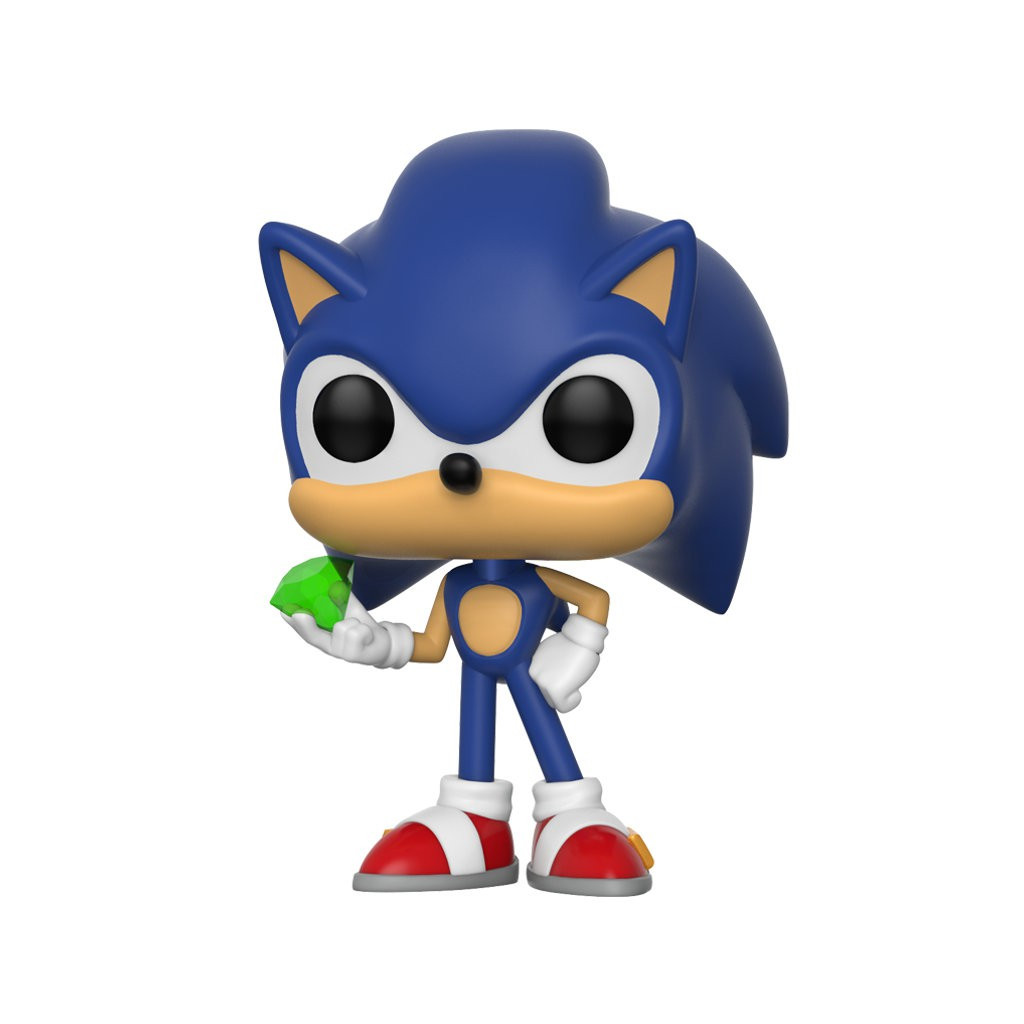 Sonic est le héros des jeux vidéo de plateforme Sonic The Hedgehog où l'on suit le hérisson Sonic traversant les niveaux à toute vitesse en se roulant en boule. Funko l'a ici représenté sous sa forme anthropomorphique avec ses bras et ses jambes et les pics bleus sur sa tête qui représentent les pics du hérisson. Il tient dans sa main l'une des émeraudes qu'il peut ramasser au cours des niveaux. Une figurine adorable et colorée qui ravira les nostalgiques.