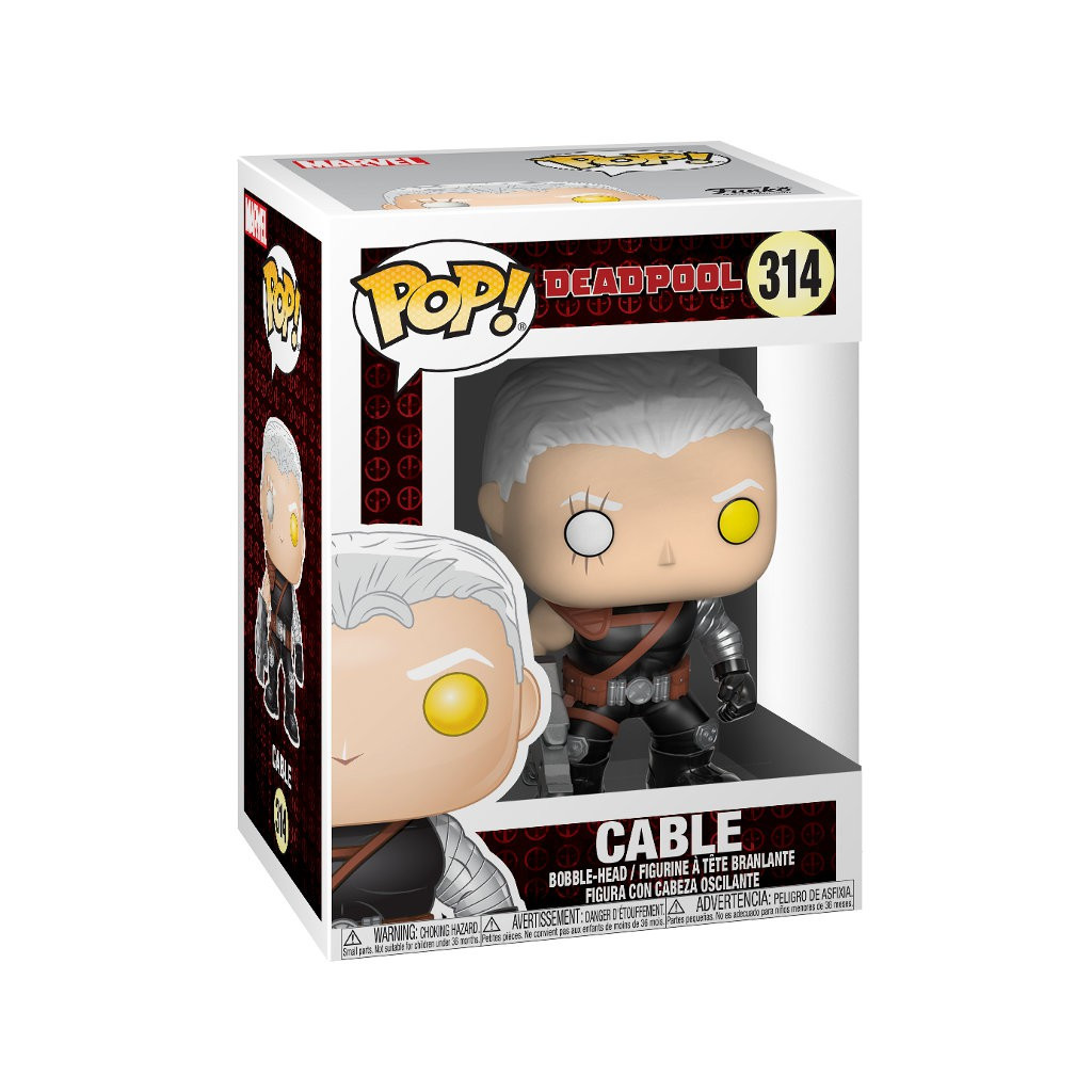 Cable est un personnage de l'univers Deadpool. Il a une machine qui lui permet de voyager dans le temps ainsi que de nombreuses parties de son corps remplacés par des pièces mécaniques ou électroniques. Funko l'a représenté avec ses cheveux et ses yeux blancs ainsi que son pistolet futuriste. Une figurine très réussie pour ce personnage complexe.