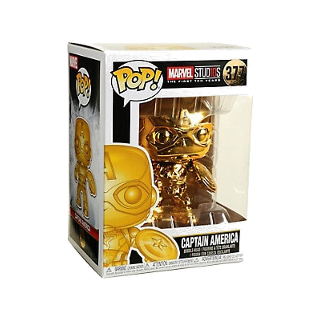 Captain America est considéré comme le premier Avenger puisque c'est pendant la seconde guerre mondiale qu'il acquiert ses pouvoirs et devient donc le premier super héros. Funko l'a ici représenté en version chrome doré avec son bouclier et son costume pour la collection anniversaire de l'univers Marvel. Une figurine superbe à ajouter au reste de la collection.